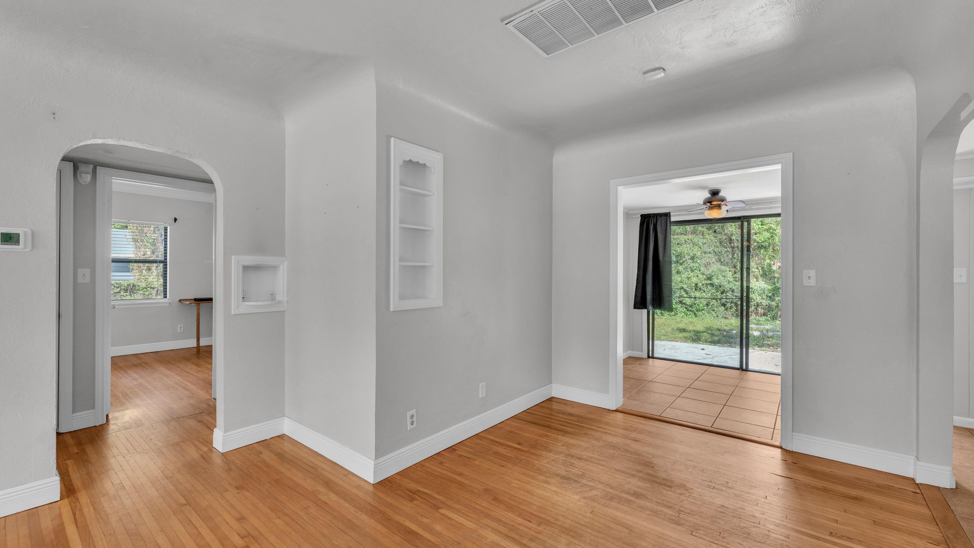 This two bedroom one bath rental home offers wood flooring, and a Florida Room! Along with screened in front porch and a back patio area with a fenced back yard.