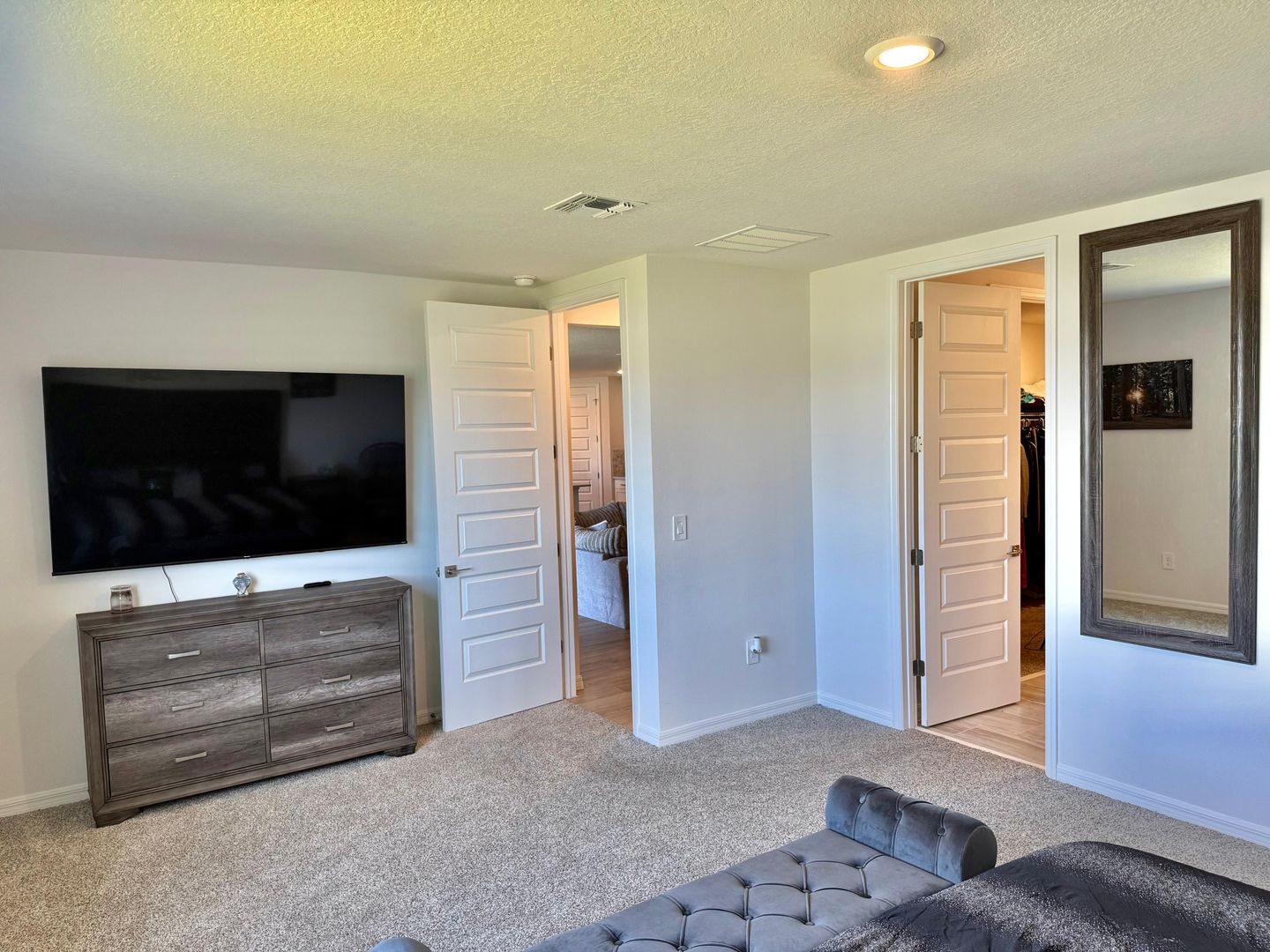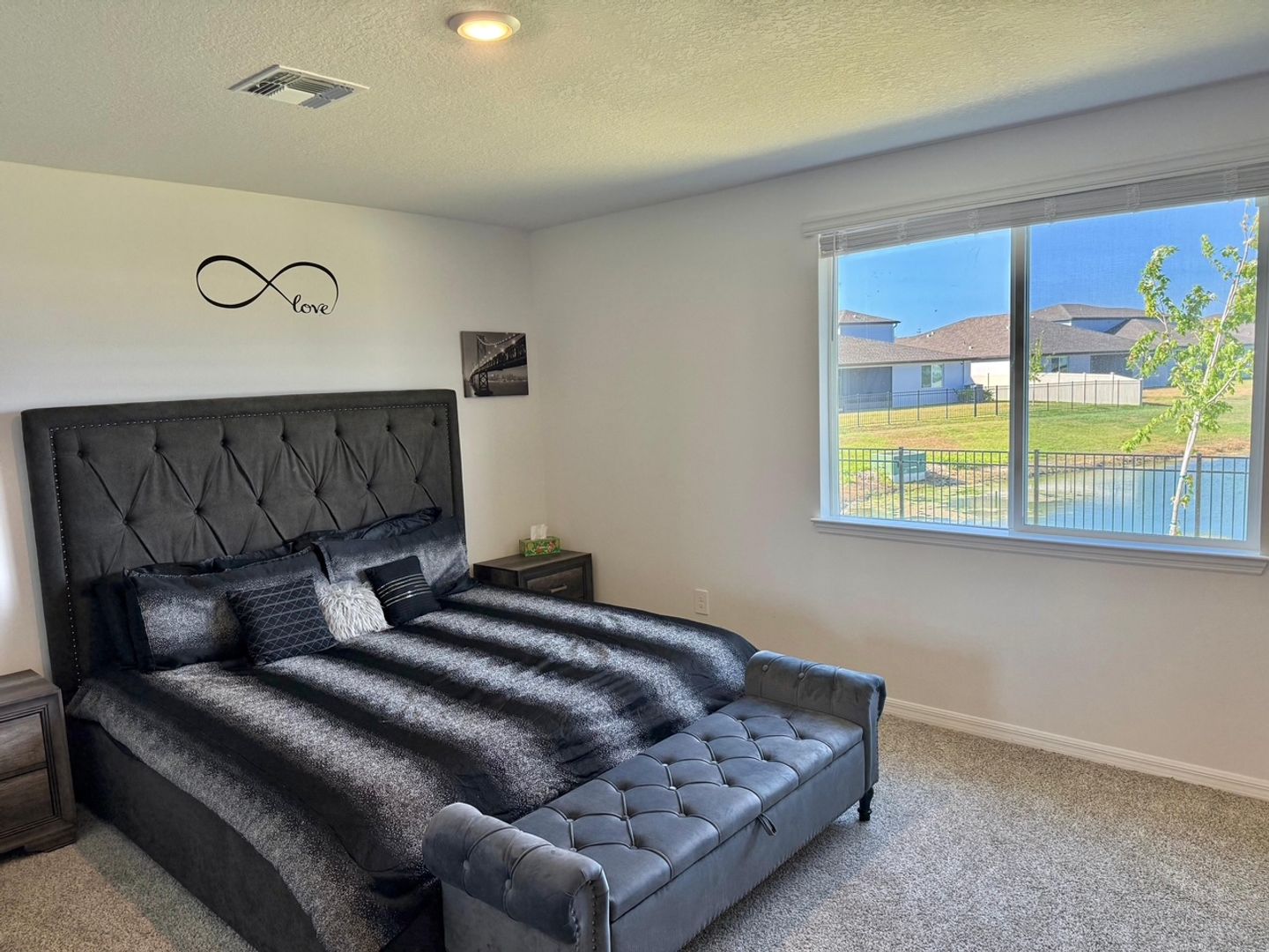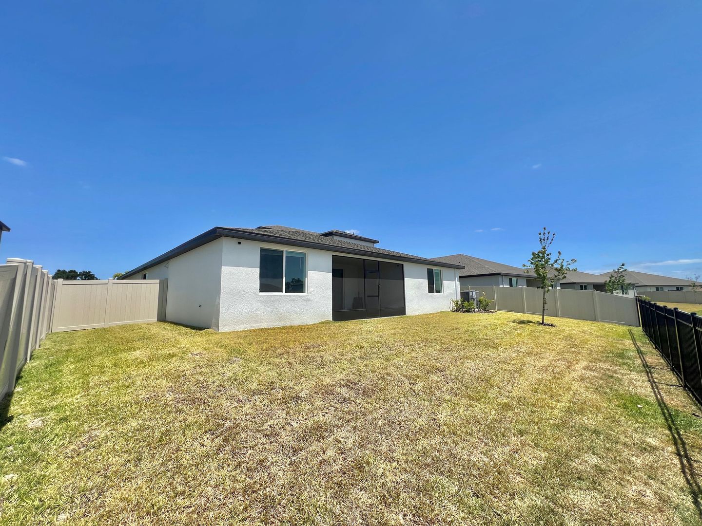 Property features an expansive open-concept living and dining area, large primary suite with private bathroom, four additional well-sized bedrooms and three additional bathrooms, and a fully screened patio in the back, and fully fenced yard to help unwind from a long day, or entertain company!