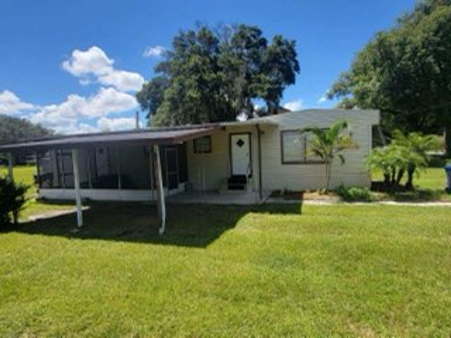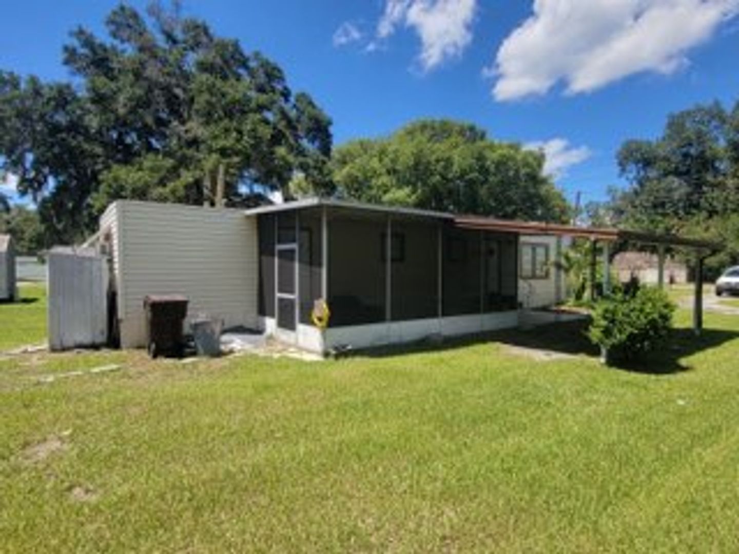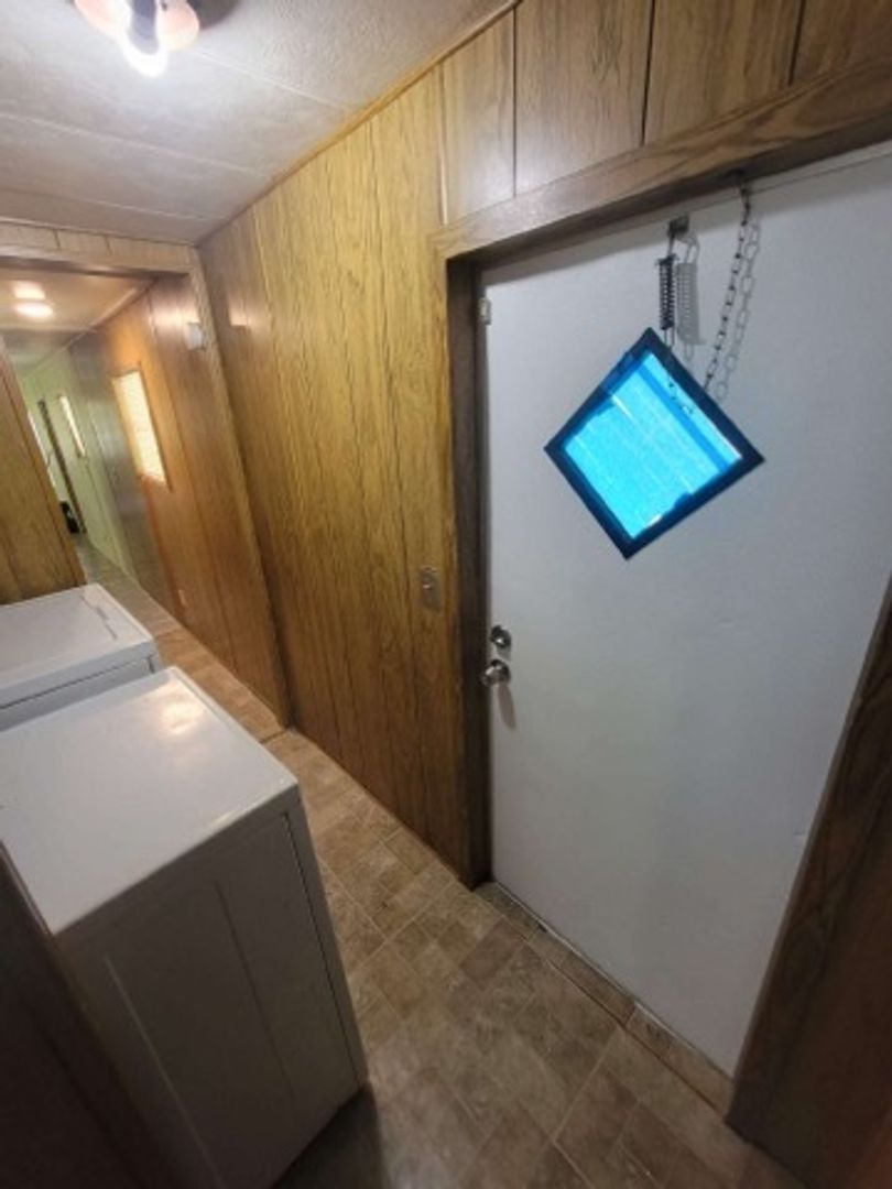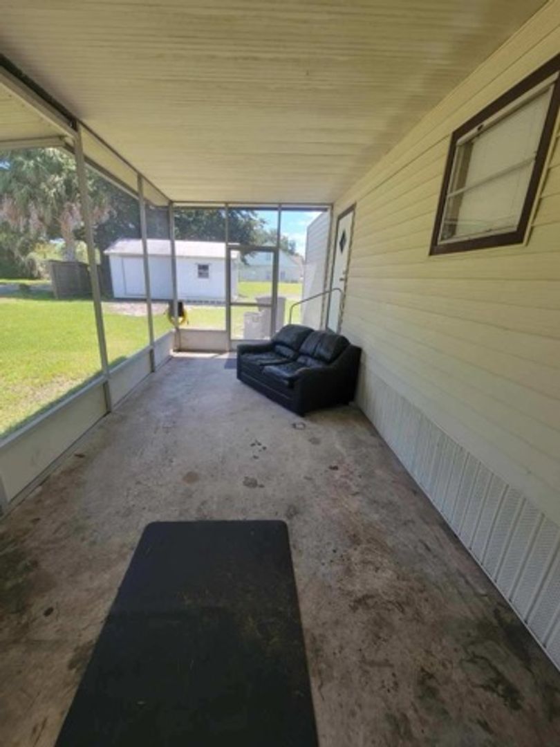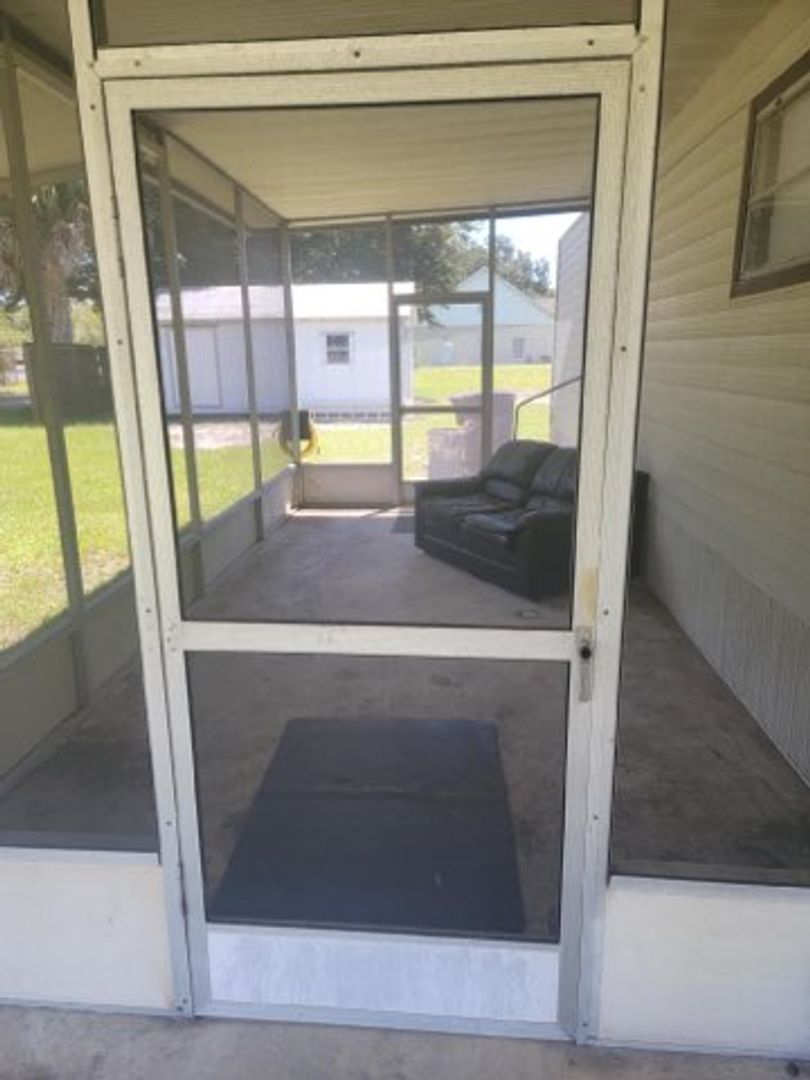 One bedroom one bath manufactured home with washer and dryer hook ups. Carpet in the living areas. Large screened in front porch!