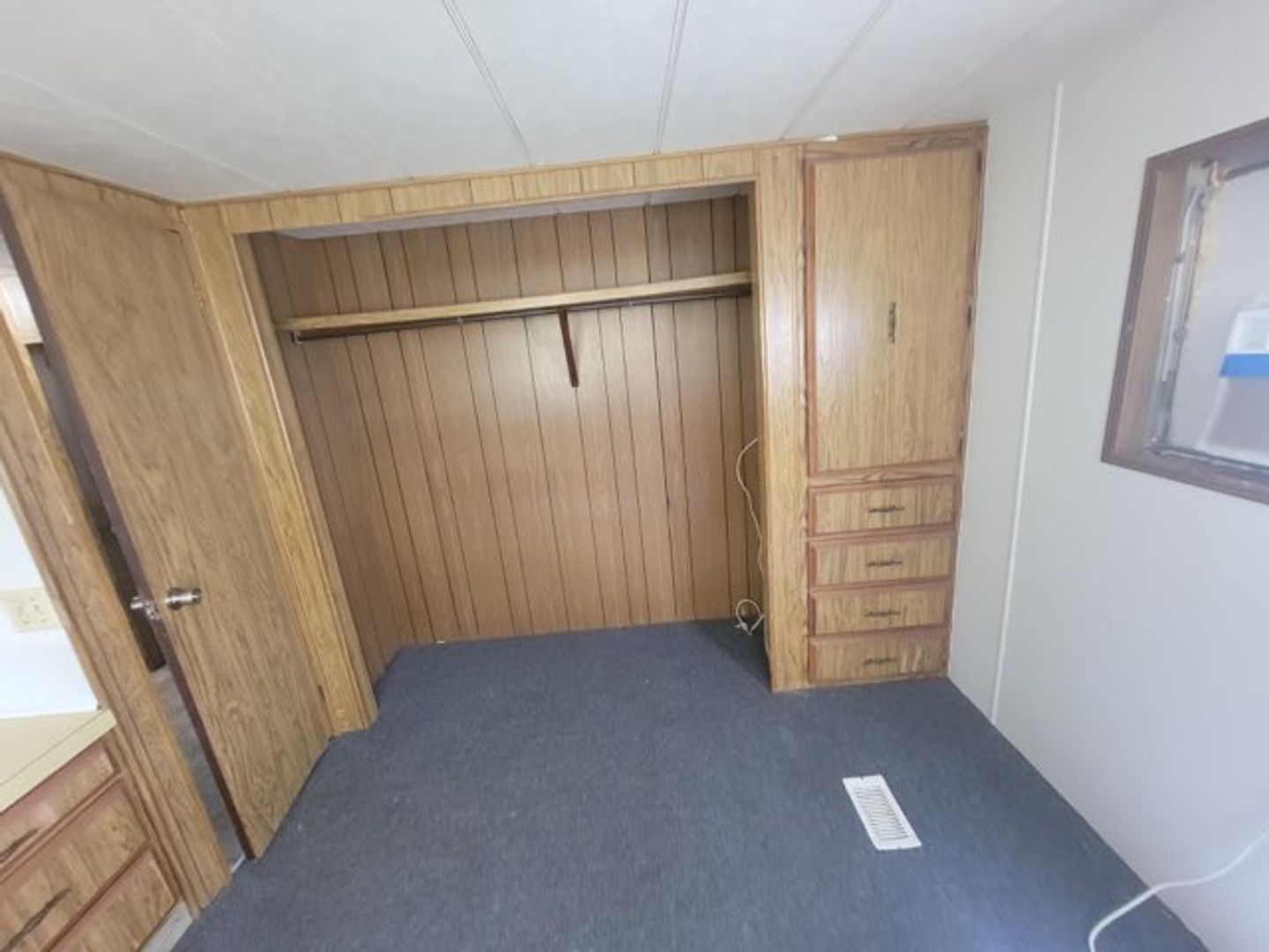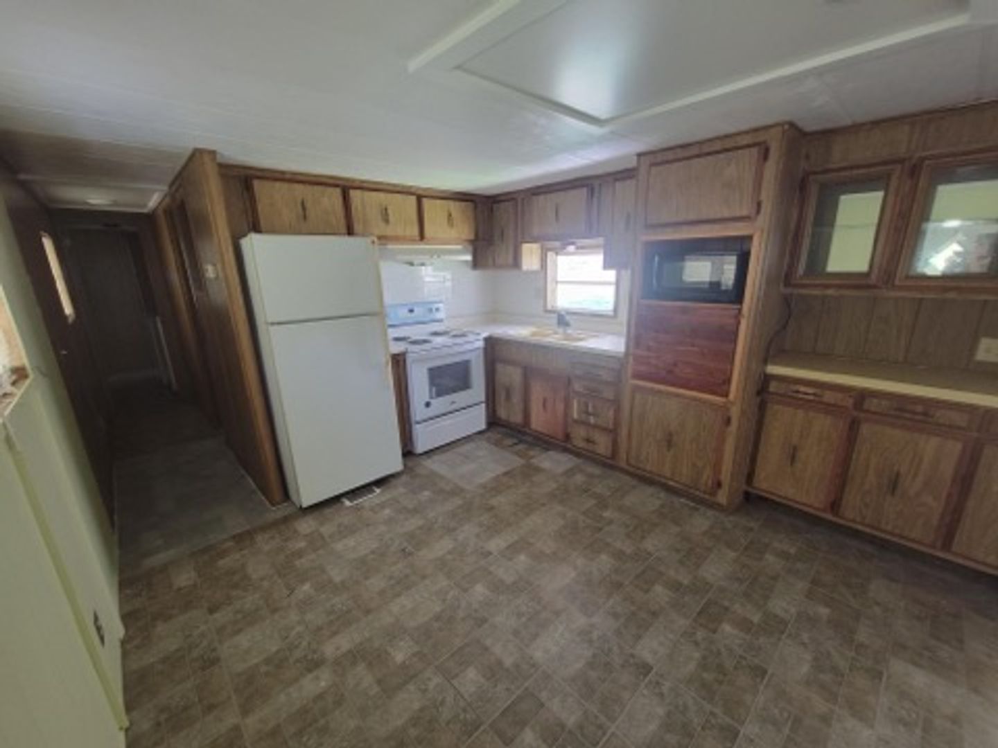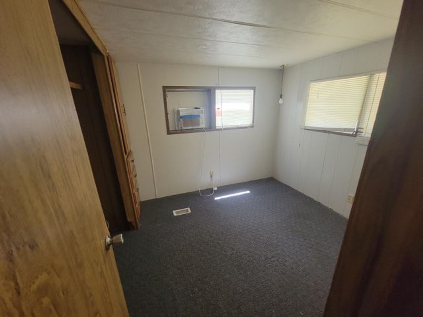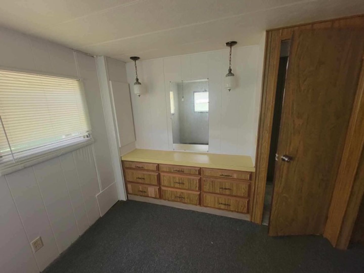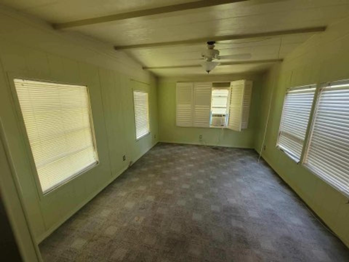 One bedroom one bath manufactured home with washer and dryer hook ups. Carpet in the living areas. Large screened in front porch!